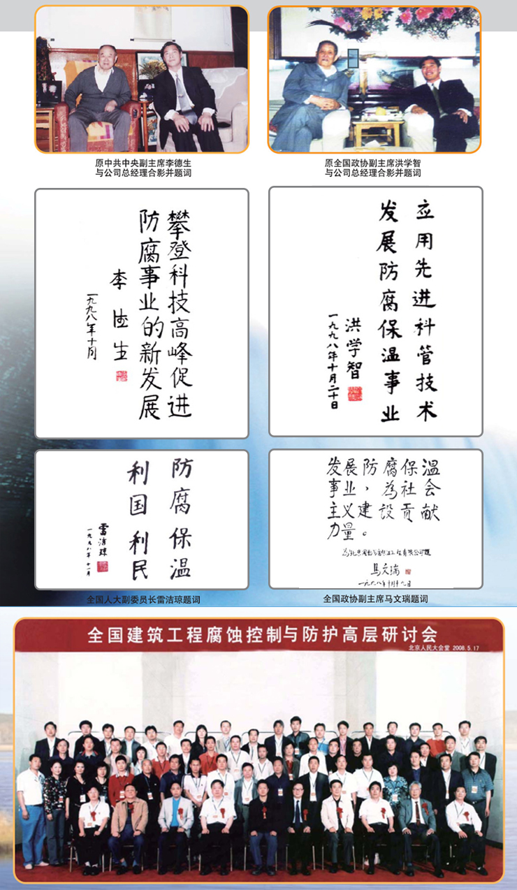 北京國勤防腐保溫工程有限公司,是國家建設(shè)部審批的防腐保溫工程一級資質(zhì)企業(yè),中國人民解放軍總后勤部推薦的軍隊防腐保溫工程施工首選一級企業(yè),是中國防腐之都誠信企業(yè),被北京質(zhì)量協(xié)會連續(xù)四年評為“重合同、守信譽(yù)”企業(yè)。隸屬于中國行政管理學(xué)會,是中國腐蝕與防護(hù)學(xué)會團(tuán)體會員單位。2003年6月通過ISO9001:2000質(zhì)量管理體系標(biāo)準(zhǔn)化認(rèn)證,2004年8月通過ISO14001:2004環(huán)境管理體系標(biāo)準(zhǔn)認(rèn)證、GB/T28001-2001職業(yè)健康安全管理體系標(biāo)準(zhǔn)認(rèn)證。